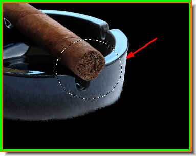 Step 11 : I am using brush to wipe away the discoloration that took place when I changed the Blend Mode after the cigar tip was cut and pasted to a new layer in Steps 3 & 4.