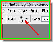 You can see how the Brush Tip looks like on the top panel. Here is a trick. Keeping SHIFT pressed click the [ (left bracket key). This will make the Brush tip softer. Click the ] (right)bracket key while keeping the SHIFT pressed will make it harder.