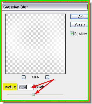 Step 51 : The Gaussian dilaogue box appears. I have given a Radius of 21.4 pixels. You can increase or decrease the blur by dragging the slider to the right or the left.