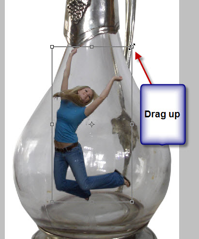 Step 7 : Click on the jug image and press CTRL+V (Paste). The girl's image is pasted onto the jug.