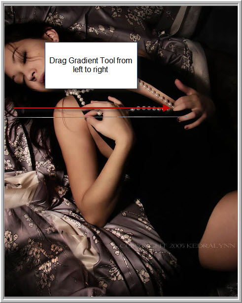 Step 9 : Drag the Gradient Tool from left to right keeping SHIFT pressed for three fourths across the image.